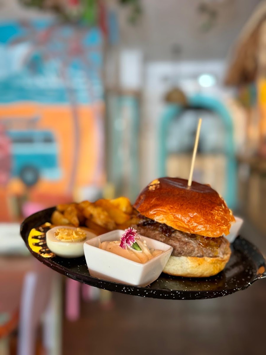 Beautilful and highly recommended breakfast and brunch place. Looks like a cozy surf and beach bar. Very kind and attentive service. Meals look and taste amazingly good! I really enjoyed all the juice mixes and smoothies. Came here several times durinh my holiday. Recommended to reserve a table especially on a Saturday after 9:30/10:00 as it quickly gets very busy.
